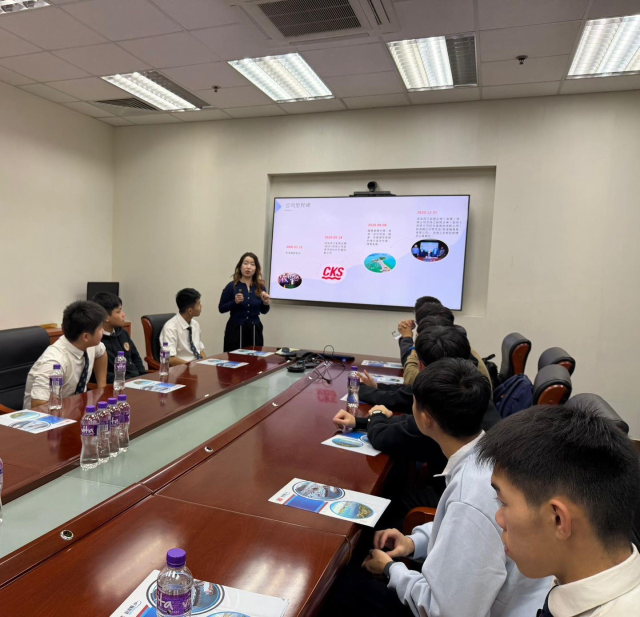 更把握機會,向新渡輪管理層介紹學生團隊參照船公司最新的【新能源船隻「新明珠39」】所製作的船隻模型